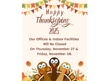 Indoor facilities closed for Thanksgiving holidays